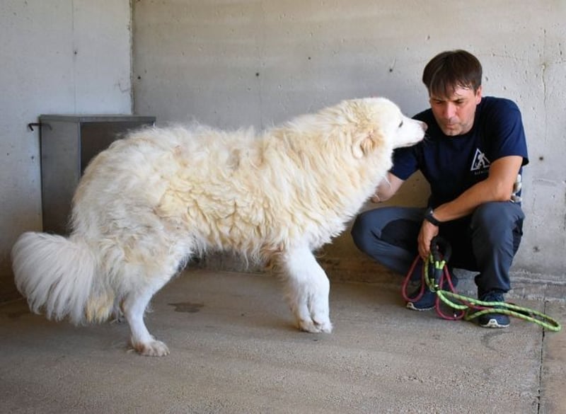 Derzeit lebt er in einer Box mit Dewitt. Mit Katzen hat man ihn im großen Lager noch nicht erlebt, das müssten wir testen. Da er aber trotz aller Unbill den Menschen gewogen ist und wir an einen guten Ausgang glauben, hoffen wir für ihn auf eine Chance, zu seinen Menschen reisen zu dürfen, um bei Ihnen und mit Ihren Tieren und Ihrem Familienrudel den Rest seines Lebens geachtet und artgerecht zu leben. Haigen mag die Nähe der Menschen und wenn sie ihn streicheln sind das Höhepunkte in seinem Hundeleben. Im Hundeknast weggesperrt zu sein ist grausam für so einen stolzen, unabhängigen Hund, der die Weite liebt und Land um sich braucht. Ein Maremmano lebt bei den Herden und schützt "seine" Tiere souverän. Lob mag er auch, aber sonst ist er selbständig. Es fehlt ihm nur jemand, der sein Foto sieht und sagt: "Das ist er!" Sie brauchen nur noch ein Gespräch mit seiner Vermittlerin zu führen und ein paar Formulare auszufüllen und schon kommt er mit dem Trapo zum Treffpunkt und von dort weiter zu Ihnen und seinem neuen Wirkungskreis.