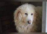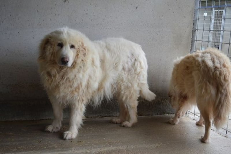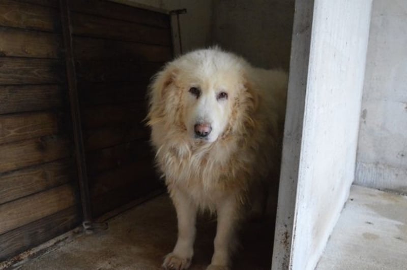 Wie ginge es wohl Hunden, die unseren Atheron aus guten Zeiten kennen, sollten sie ihn jemals wiedersehen? Der stattliche Rüde ist grade einmal vier Jahre alt und hat ein altes Gesicht, einen alten, glanzlosen und so abgrundtief traurigen Blick. Vier Jahre…der Lebenserwartung dieser Herdenschützer nach liegen zwei Drittel seines Lebens noch vor ihm. Ob es die letzten zwei Jahre waren, die ihn so rasant haben altern lassen oder ob das Grauen für ihn schon vor seiner Einlieferung in das Lager begonnen hat, das wissen wir nicht. Aber was wir wissen ist, dass es so nicht weitergeht. Der einzig schwache Trost ist, dass er nicht alleine dort „lebt“, sondern sein Schicksal mit unserer Olivielle teilt.