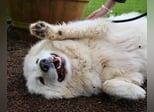Und damit wären wir wieder an der Stelle angelangt, an der ich Ihnen gerne erklären möchte, warum Hadriano für mich so viel mehr ist als nur einer unter vielen: Dieser wunderschöne, zugegebenermaßen aktuell mangels Pflege etwas zerzauselte, Prachtkerl hält das alles nicht nur seit mehr als 4 ½ Jahren (Stand Mai 2025) aus, sondern konnte sich dabei sogar sein liebenswertes Wesen bewahren. Die schlechten Jahre haben ihn (bisher) nicht kleingekriegt! Der süße Schlumpf ist zwar anfangs etwas schüchtern, aber sobald er die Gelegenheit bekommt, den Zweibeiner an seiner Seite als „vertrauenswürdig“ einzustufen, ist er ein durchweg anhänglicher, freundlicher und liebevoller Hund, der obendrein auf dem Rücken liegend sein „Grinsekatzen-Gesicht“ präsentiert!