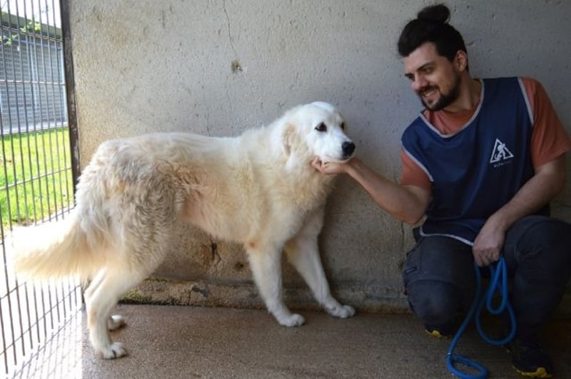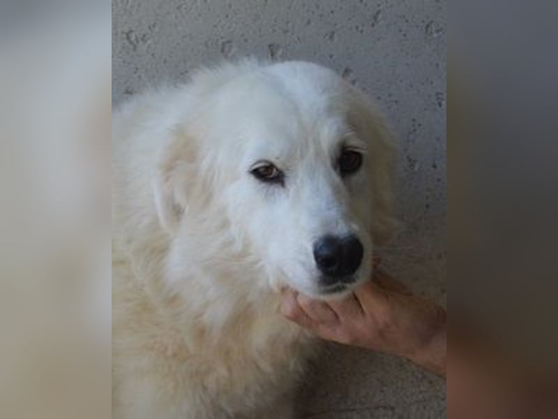 Da ist diese bildhübsche Hündin: ein Traum in Weiß, mit tiefen braunen Augen und lackschwarzer Stupsnase. Ein Maremmano (Mix) wie aus dem Bilderbuch.