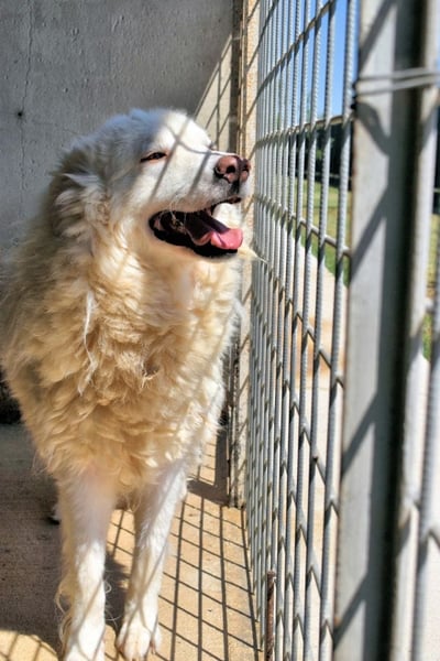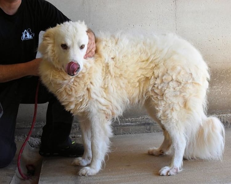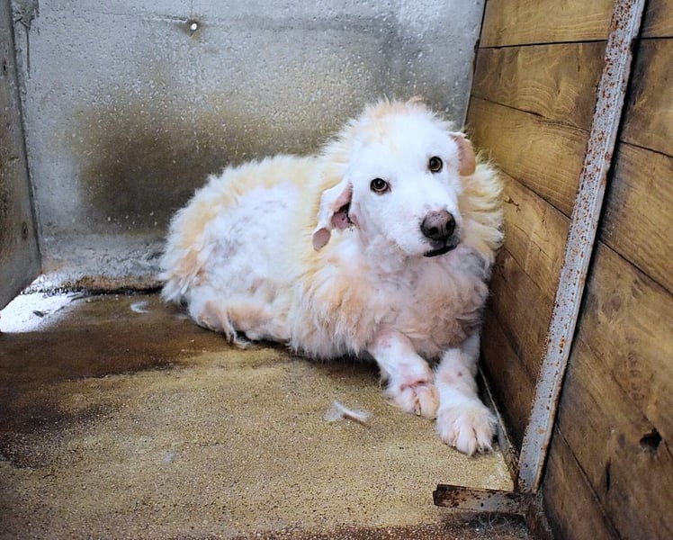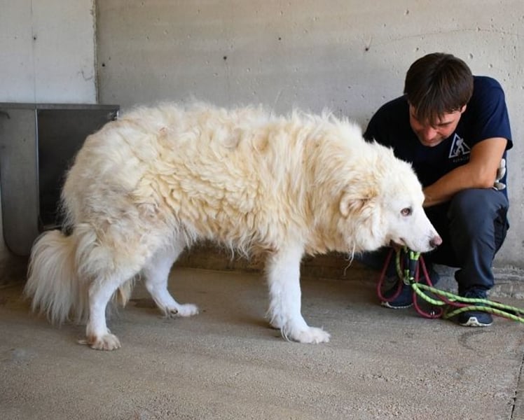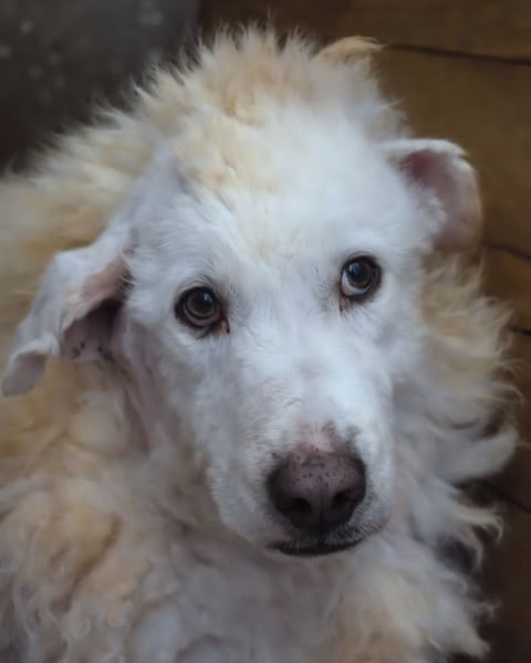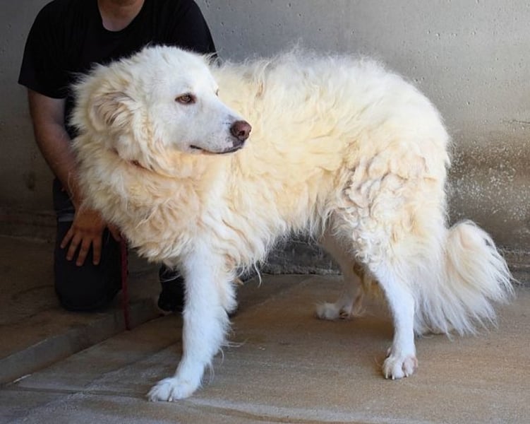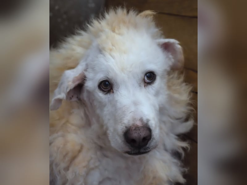 Haigen ist zum Anbeißen, wuschelig und einfach eine zutrauliche, zärtliche Augenweide! Und nicht nur das, er ist ein Maremmano-Mischling, ein Herdenschutzhund. Er kann viel mehr. Er ist in einem Horrorlager, versteckt vor der Welt und ihm wohlwollenden Menschen. Da ist man froh, wenn man entweder herausgeholt wird oder stirbt. Leider wissen wir nicht, ob er aus einer Arbeitslinie stammt oder einfach nur ein recht großer Familienhund ist. Und da er vor dem schrecklichen Hundelager schon ein vierjähriges Leben draußen hatte, ist alles möglich.
