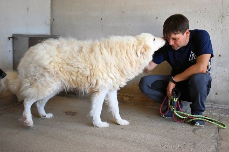 Derzeit lebt er in einer Box mit Dewitt. Mit Katzen hat man ihn im großen Lager noch nicht erlebt, das müssten wir testen. Da er aber trotz aller Unbill den Menschen gewogen ist und wir an einen guten Ausgang glauben, hoffen wir für ihn auf eine Chance, zu seinen Menschen reisen zu dürfen, um bei Ihnen und mit Ihren Tieren und Ihrem Familienrudel den Rest seines Lebens geachtet und artgerecht zu leben. Haigen mag die Nähe der Menschen und wenn sie ihn streicheln sind das Höhepunkte in seinem Hundeleben. Im Hundeknast weggesperrt zu sein ist grausam für so einen stolzen, unabhängigen Hund, der die Weite liebt und Land um sich braucht. Ein Maremmano lebt bei den Herden und schützt "seine" Tiere souverän. Lob mag er auch, aber sonst ist er selbständig. Es fehlt ihm nur jemand, der sein Foto sieht und sagt: "Das ist er!" Sie brauchen nur noch ein Gespräch mit seiner Vermittlerin zu führen und ein paar Formulare auszufüllen und schon kommt er mit dem Trapo zum Treffpunkt und von dort weiter zu Ihnen und seinem neuen Wirkungskreis.