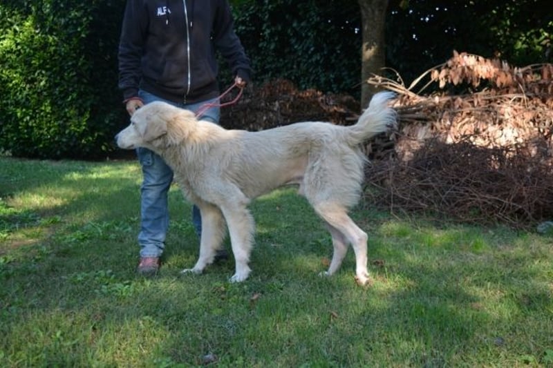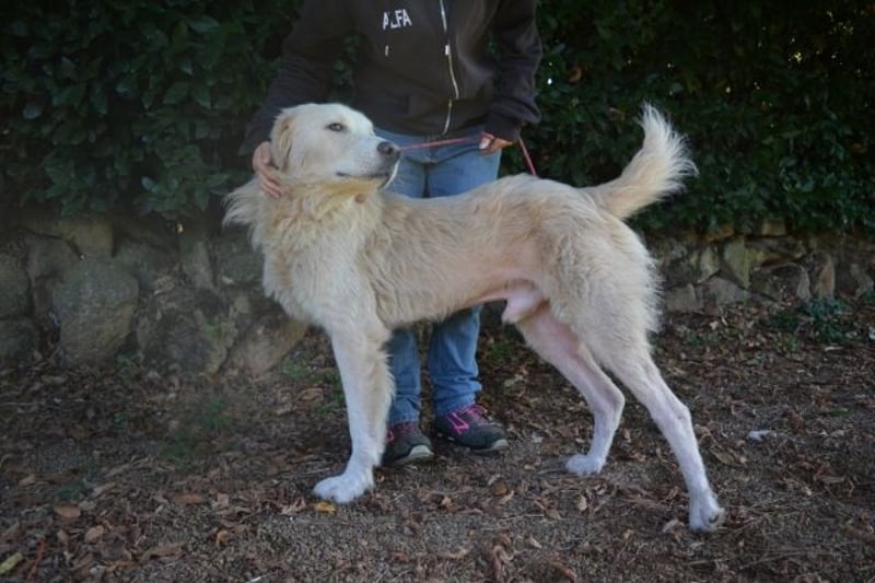 Siskos Zustand ist erbärmlich: der dreijährige Rüde mit den wachsamen Augen hat das Glück im Unglück, in einem Lager gelandet zu sein, in dem wenigstens einfachste medizinische Versorgung möglich ist: er hatte beim Eintreffen starken Durchfall, er ist abgemagert, seine Haut ist immer noch in einem furchtbaren Zustand und er brachte unzählige Flöhe mit, die bei einem so geschwächten Tier natürlich paradiesische Zustände vorfinden. Erst wenn er sich erholt hat, kann er kastriert werden. Doch Sisko ist ein Kämpfer. Er ist ein Maremmano Mischling, ein Herdenschutzhund mit Charakter, Stolz und einem großen Herzen. Diese Hunde sind etwas ganz Besonderes – treu, intelligent und selbstständig, mit einem tief verwurzelten Beschützerinstinkt für ihre Menschen und ihr Zuhause.