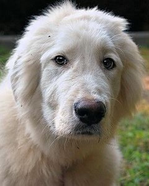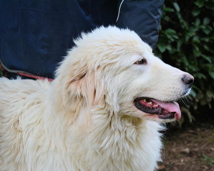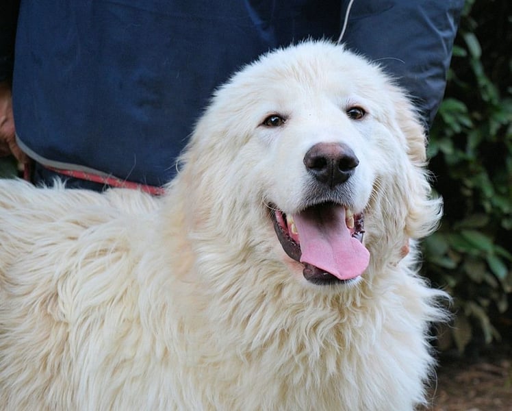 Der niedliche, etwa halbjährige Leofric sieht im Moment, im August 2025, noch aus wie ein kleiner, weißer Löwe: Sein glattes, kurzhaariges Fell im Gesicht kontrastiert mit der buschigen Mähne am Oberkopf (und dem Rest des Körpers). In Kombination mit den (Dis-)Proportionen, wie es bei Welpen und Junghunden üblich ist, ergibt das ein äußerst süßes Päckchen Hund.