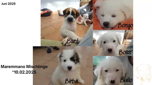 Zu Bullos Vorgeschichte: Die fünf kleinen B-Wunder, die einst in einem Karton dem sicheren Tod überlassen wurden? Die Geschichte, bei der einem kurz das Herz stehen bleibt – und dann wieder weiterschlägt, weil sie so ein gutes Ende genommen hat? Genau: Bart, Boss, Bongo, Birba und Bullo – unsere mutigen Mini-Maremmanen mit der großen Portion Glück im Fell!