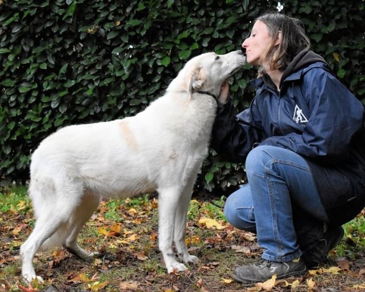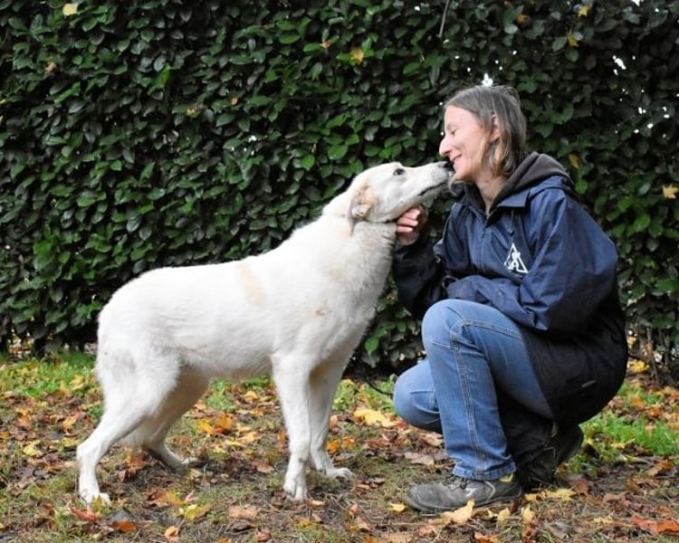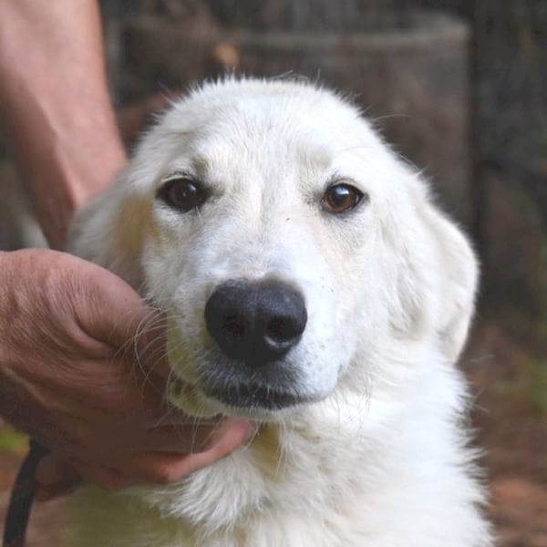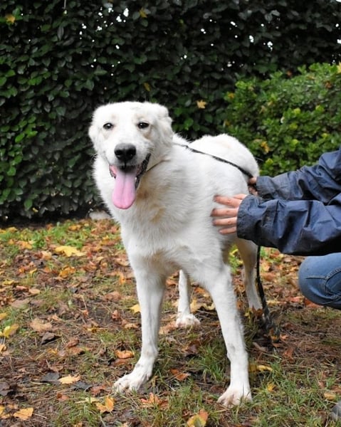 Einige meiner Hundefreunde kennen die Welt außerhalb und erzählen manchmal davon. Sie soll bunt und voller Abenteuer sein. Ich weiß nicht, wovon sie reden, da ich mein ganzes Leben hier verbracht habe. Gelegentlich berichten sie auch von Menschen, die Hunde wie uns gerne haben und uns ein Zuhause geben. Sie würden sogar mit uns spazieren gehen und uns die Welt zeigen. Das sind meine Lieblingsgeschichten. Bei einem Besuch der Tierschützer habe ich zuerst versucht, ihnen aus dem Weg zu gehen, aber als sie mich berührten, fand ich das ganz toll! Ich habe mich entspannt und es genossen und mich mit Küssen bedankt. Gesellig und brav bin ich, haben sie gesagt, und an der Leine kann ich auch schon ein bisschen laufen.