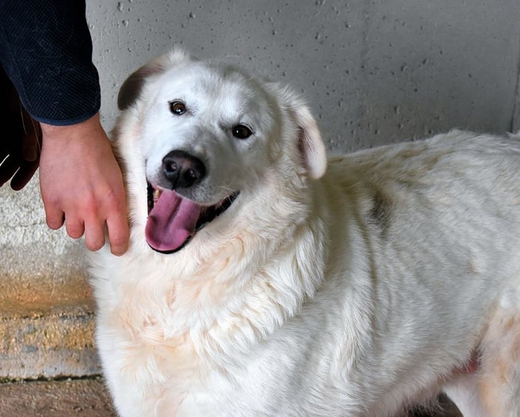 Er ist ein Hund wie ein Traum: bildschön, reinweiß, stattlich groß, mit dem man etwas an der Hand hat. Hauptberuflich Maremmano-Mischling. Deren Vorzüge sind eine robuste Gesundheit bei guter Haltung. Auch fit wie ein Turnschuh und aufmerksam, wenn es um das Wohl der Herde geht, die unter seiner Kontrolle lebt. Die Arbeitslinie dieser Hunde sind selbständige Herdenschutzhunde, die alt werden und keine Züchtungsschäden kennen. In welche Richtung er tendiert, können wir nicht sagen. Aber wir wissen, dass er sehr fein an der Leine geht und mit Menschen gesellig, verträglich und freundlich ist.