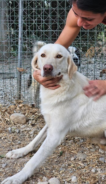 Mosé wurde als Welpe verletzt in einem Graben gefunden. Er hatte ein gebrochenes Bein, wurde operiert und hat sich vollständig erholt. Seitdem lebt er im Zwinger und kennt bisher kaum ein Leben außerhalb davon.