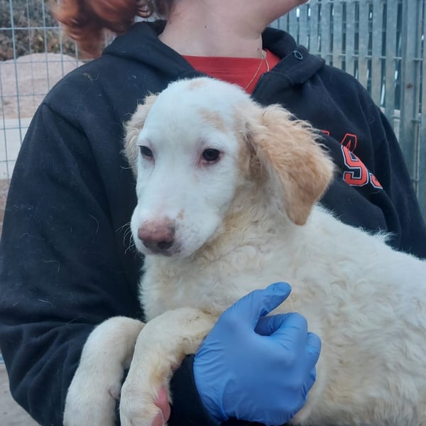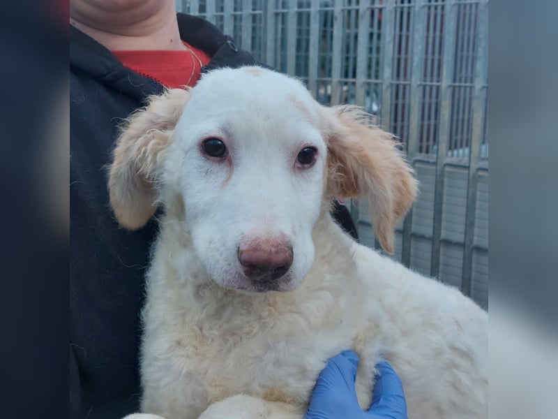 Bubo ist einfach nur Zucker, wir denken, dass er ein Retriever-Maremmanomischlinge ist und ca. 55-60 cm groß wird.