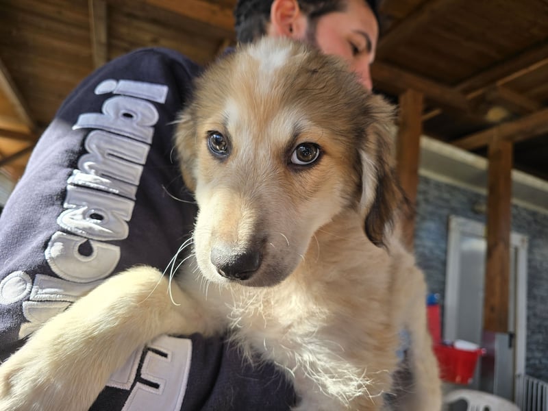 und noch Bruder Tancredi. Er ist farblich eine Mischung der anderen Brüder. Sein Fell ist grau, beige gestromt. Aucher ist welpentypisch verspielt, freut sich über jede Abwechslung und ist sehr sozial zu seinen Artgenossen.