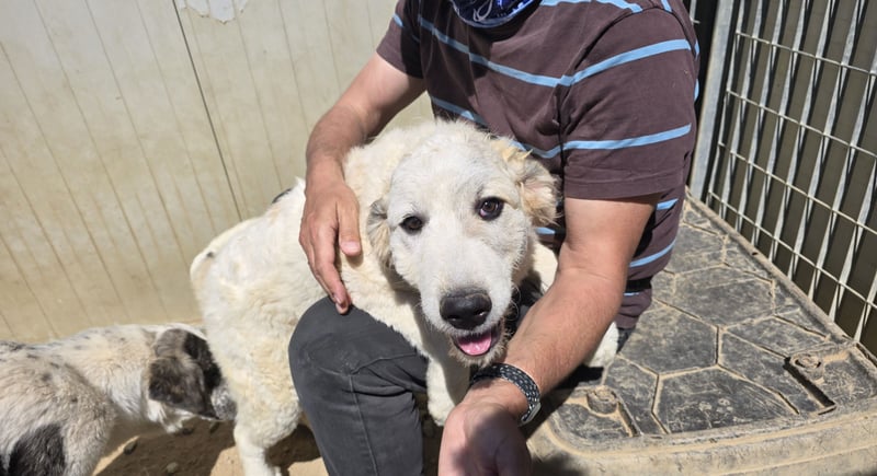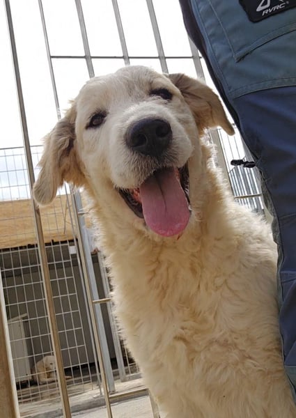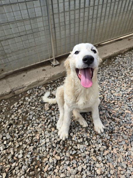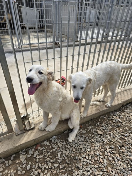 Balma sieht fast identisch aus wie Bruder Baxter, allerdings hat sie ein paar dunkle Flecken auf dem Rücken. Sie ist welpentypisch verspielt, freut sich über jede Abwechslung, will spielen, toben, schmusen - alles das, was Hunde in diesem Alter so machen. Leider haben die drei in ihrem Welpenställchen nur sehr wenig Platz und so hat auch das Spielen und Toben seine Grenzen.