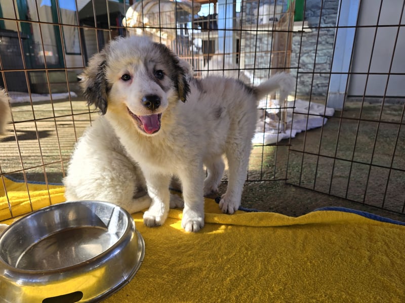 Sie ist welpentypisch verspielt, freut sich über jede Abwechslung, will spielen, toben, schmusen - alles das, was Hunde in diesem Alter so machen. Leider haben die Drei in ihrem Welpenställchen nur sehr wenig Platz und so hat auch das Spielen und Toben seine Grenzen.