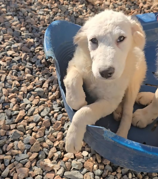 Wir suchen für Taco eine Familie, wo er geliebt und gefördert wird. Es handelt sich um Maremmanomischlinge. Daher sollten Sie Hundeerfahrung und einen Garten besitzen.
