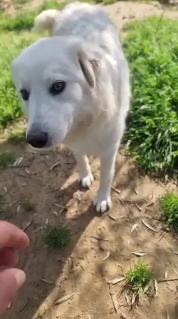 Bella ist eine noch junge, wunderschöne Maremmano-Mix-Hündin. Doch ihr zartes Herz trägt tiefe Narben. Anfangs ließ sie sich kaum einfangen, und bis heute kämpft sie mit großem Misstrauen gegenüber Menschen.