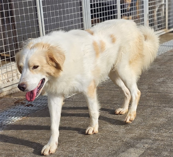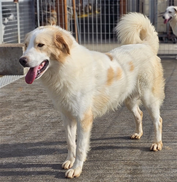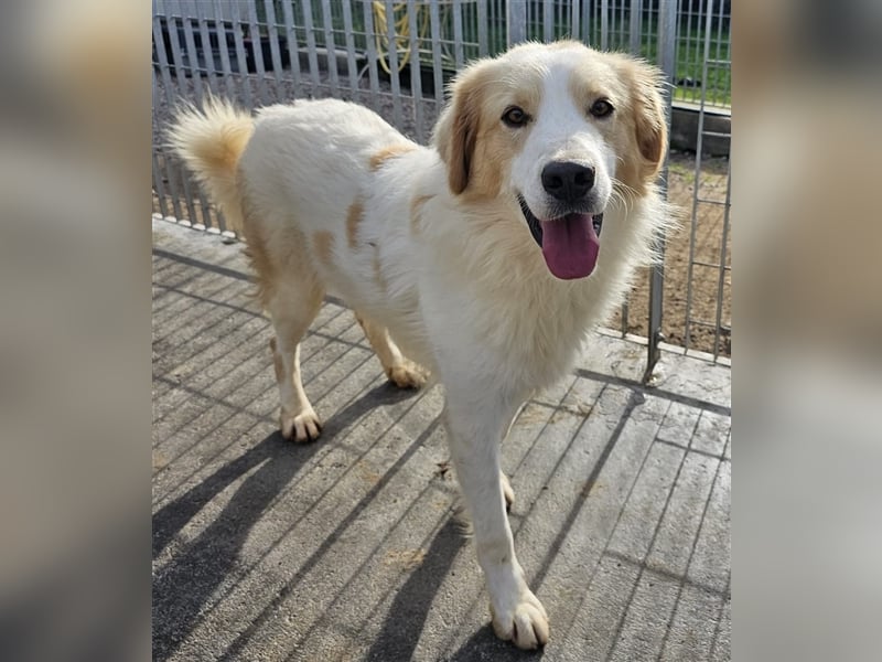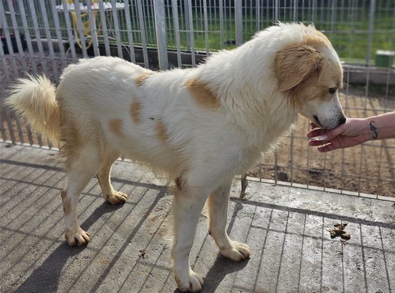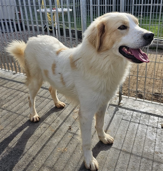 Chiccio ist ein Maremmanomischling, lesen Sie hierzu auf unserer Homepage die Rassebeschreibung des Maremmanos.