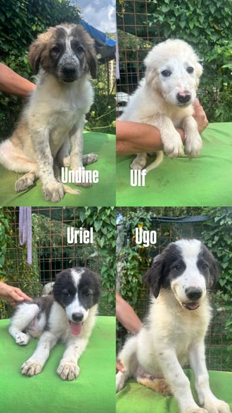 Ulf, Ugo, Uriel und Undine sind kleine, bald große, bezaubernde Maremmano-Mischlinge, die noch viel lernen müssen. Bisher hatten sie wohl kaum mit dem Menschen zu tun und legen auf den Kontakt bisher keinen großen Wert. Aber was nicht ist, kann ja noch werden und wer weiß, was schon alles erlebt haben. Was wir aber wissen: Sie sind noch jung, jung genug, um viel zu lernen, jung genug, um schlechte Erfahrungen zu vergessen und neu zu überschreiben. Sobald man ihnen den Kontakt zu uns Menschen schmackhaft gemacht hat und ihnen die Vorzüge des gemeinsamen Lebens zeigt, werden sie sicher tolle Alltags-Begleiter. Die 4 haben noch ihr ganzes Leben vor sich, helfen Sie uns ein Happy End mit vielen tollen Abenteuern für unsere Kleinen zu schreiben?