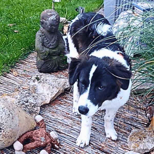 Im Garten fühlt er sich ganz in seinem Element. Da wird geschnuppert, gerannt, geschaut, ob jemand mitmacht – und weiter geht’s. Uriel ist bereits zuverlässig stubenrein, und neue Abläufe übernimmt er so schnell, als hätte er sie schon immer gekannt. Das Laufen an der Leine wird noch geübt – logisch, es gibt ja viel zu entdecken – aber Uriel schaut erst, versteht dann, und fügt sich anschließend ganz selbstverständlich ein.