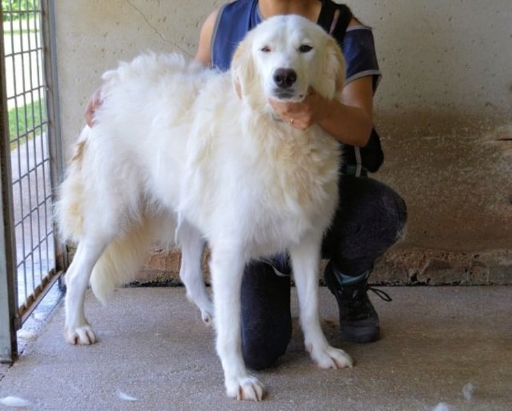 Denn jetzt bin ich die letzte Schwester ohne Zuhause. Die Letzte der Kuschel-Gang, die noch im Lager wartet. Das macht mich zur offiziellen Oberchefin der Langeweile hier. Ich kenne jeden Stein beim Vornamen, habe eine innige Beziehung zu meinem Futternapf entwickelt (auch wenn der eher wortkarg ist), und ernsthaft überlegt, einen Herdenschutzhund-Selbstfindungskurs für die anderen Hunde zu starten. Ich mein, wenn ich schon warte, kann ich auch gleich Wissen weitergeben, oder? Was das heißt? Na, ich bin charmant, wachsam, sensibel, selbstständig – und vor allem: Ich weiß genau, was ich will. Und was ich will, ist ein eigenes Zuhause. Mit Menschen, die nicht erwarten, dass ich sofort alles kann, sondern mir mit Ruhe und Respekt zeigen, wie schön das Leben außerhalb des Zauns ist. Mit einem Garten zum Bewachen (oder wenigstens einem Sofa zum Dösen), einem souveränen Hundefreund (optional, aber empfohlen), und vielleicht – ganz vielleicht – einer eigenen Quietschente.