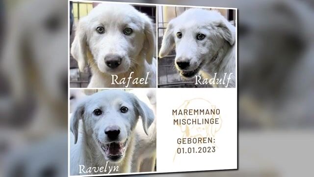 Ich bin Rafael, ein majestätischer Maremmano Mischlingsrüde mit flauschigem, weißem Fell. Seit Ende Mai lebe ich in einem fürchterlichen Canile und es wird Zeit dafür, endlich hier rauszukommen. Zusammen mit meinen drei Geschwistern, Raynette, Ravelyn und Radulf teile ich mir aktuell einen Zwinger.