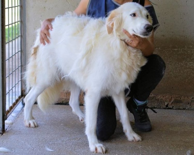 Denn jetzt bin ich die letzte Schwester ohne Zuhause. Die Letzte der Kuschel-Gang, die noch im Lager wartet. Das macht mich zur offiziellen Oberchefin der Langeweile hier. Ich kenne jeden Stein beim Vornamen, habe eine innige Beziehung zu meinem Futternapf entwickelt (auch wenn der eher wortkarg ist), und ernsthaft überlegt, einen Herdenschutzhund-Selbstfindungskurs für die anderen Hunde zu starten. Ich mein, wenn ich schon warte, kann ich auch gleich Wissen weitergeben, oder? Was das heißt? Na, ich bin charmant, wachsam, sensibel, selbstständig – und vor allem: Ich weiß genau, was ich will. Und was ich will, ist ein eigenes Zuhause. Mit Menschen, die nicht erwarten, dass ich sofort alles kann, sondern mir mit Ruhe und Respekt zeigen, wie schön das Leben außerhalb des Zauns ist. Mit einem Garten zum Bewachen (oder wenigstens einem Sofa zum Dösen), einem souveränen Hundefreund (optional, aber empfohlen), und vielleicht – ganz vielleicht – einer eigenen Quietschente.