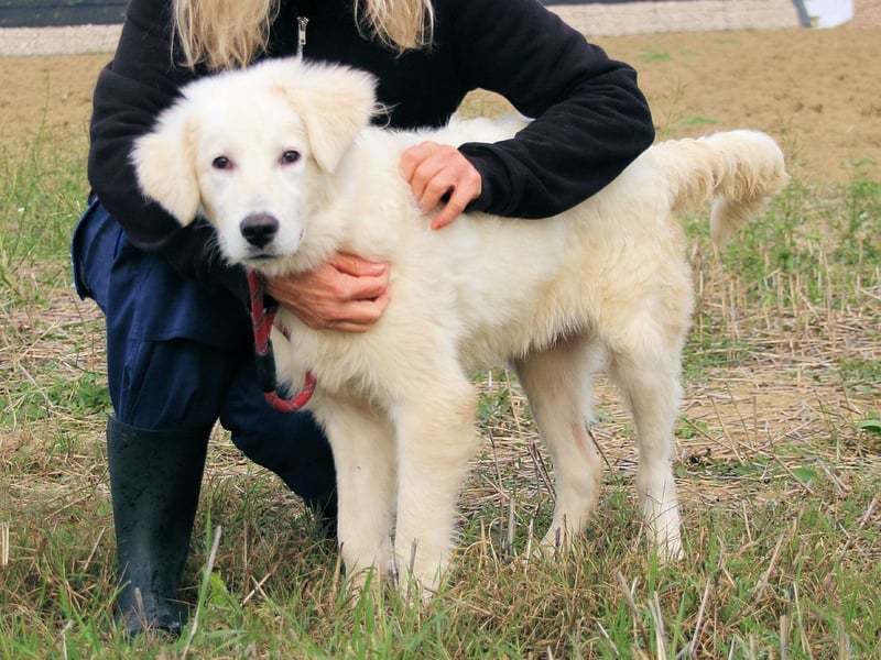 Vor ein paar Tagen waren dann aber Menschen hier, die uns vielleicht helfen können, damit wir nicht für immer hierbleiben müssen. Sie meinten, wir zwei wären freundliche und liebe Hundekinder und wir sollen uns ordentlich anstrengen, damit das so bleibt, dann würden wir bestimmt ganz bald in ein Zuhause ziehen können. Zu anderen netten Menschen. Die haben dann einen großen Garten und würden es schön finden, wenn ein kleiner Herdenschützer bei ihnen einzieht und es würde auch reichen, wenn wir z.B. nur den Garten beschützen. Puh, ein Glück, irgendwann finde ich schon noch raus, was eine Herde ist, aber erst mal reicht es, wenn ich so lieb und freundlich bleibe und kann trotzdem ein Zuhause bekommen.‘