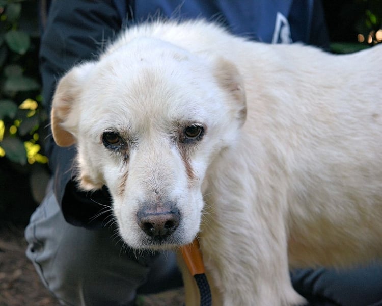 Wenn man ehrlich ist, sieht man es sofort. Talete ist zu dünn. Er ist müde, er hat offene Wunden an den Beinen, seine Augen sind entzündet. Das ist kein Hund, dem es gut geht. Das ist ein Hund, der Schmerzen hat, der abbaut. 2024 war er noch ein Stehaufmännchen. Einer, der immer wieder aufsteht. Er steht auch heute noch auf, aber es reicht nicht mehr.