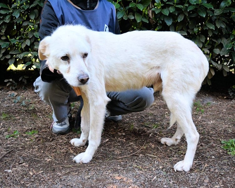 Unsere weiße Schönheit ist ein sanfter Vertreter seiner Art. Er ist etwas schüchtern und zeigt sich eher ruhiger. Talete mag den Kontakt zu uns Menschen und auch zu seinen Artgenossen. Sie merken, die erste Hürde in Taletes Leben wurde gemeistert! Was nun fehlt ist seine erste eigene und liebevolle Familie.