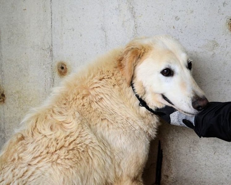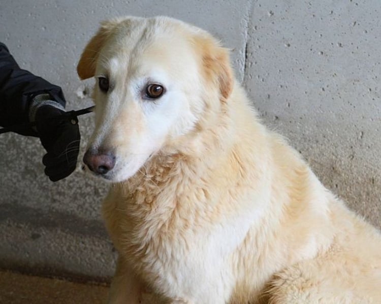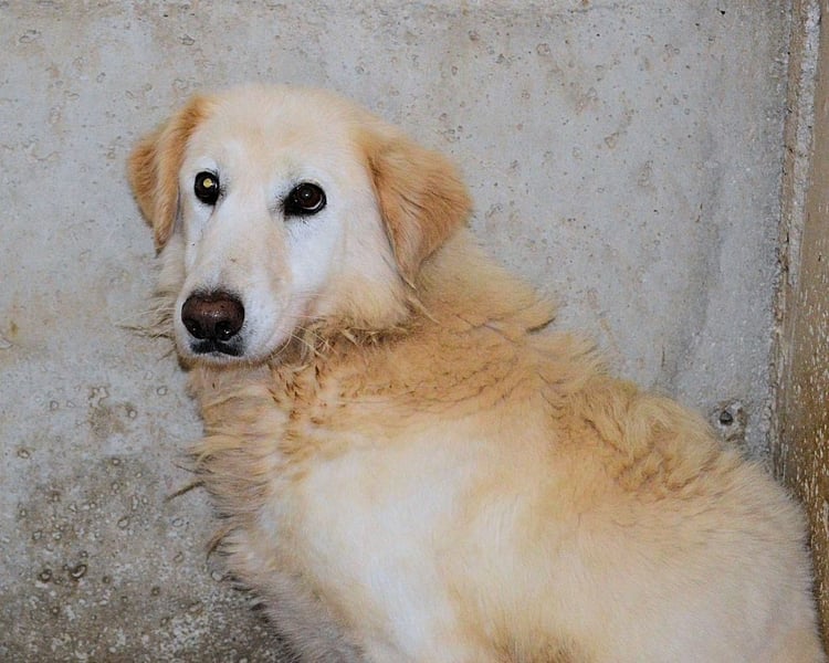 Aus Friederchen ist in der Zwischenzeit Frieder geworden, ein weißer Maremmano Mischling von stattlicher Größe. Seit seiner Gefangennahme sind über fünf (5!) lange Jahre vergangen und Frieder sitzt noch immer in seinem Kerker. Er kennt nicht sehr viel vom Leben und der Welt - wie auch, man hat ihm ja nie die Gelegenheit gegeben. Und weil die Menschen an dem Ort, an dem er eingesperrt ist, die gefangenen Hunde schlecht behandeln (ein Euphemismus…), ist es auch nicht weiter verwunderlich, dass Frieder vor Zweibeinern etwas Angst hat. Vielleicht hat er das erste Mal in seinem Leben freundliche Wort an ihn, ja, an IHN gerichtet, gehört, als im Februar 2024 die mit uns befreundeten Tierschützer endlich die Erlaubnis erhalten hatten, Frieder zu besuchen. Sie beschreiben Frieder als sehr sozial im Umgang mit seinen zwei Zellengenossen. Er habe sich vor den ihm Unbekannten etwas gefürchtet, auch die Leine um den Hals habe ihm Angst gemacht. Frieder wird seine guten Gründe haben, weshalb er so reagiert. Die Tierschützer betonen in ihrem Bericht, dass Frieder kein einziges Mal versucht habe, aus Angst oder Unsicherheit zu schnappen. Er habe einfach versucht, unsichtbar zu werden…
