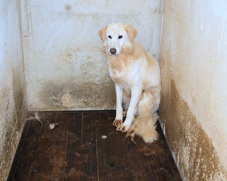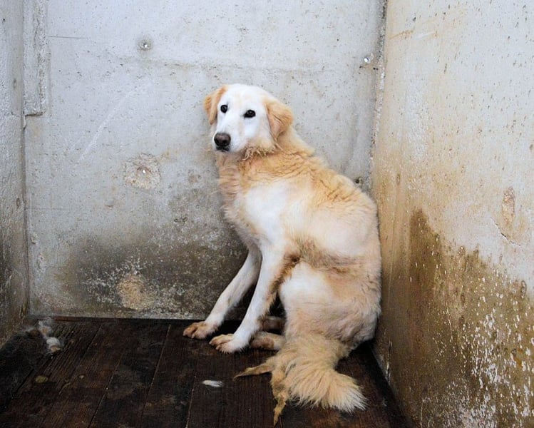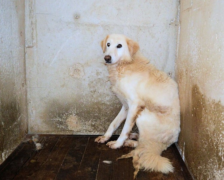 Frieder kam als Welpe in dieses Lager. Er war knapp zwei Monate alt, ein weißes Fellknäuel mit tapsigen Schritten und diesem typischen Welpenblick, der eigentlich nur eins sagen will: „Hallo Welt, hier bin ich!“ Dann fiel eine Tür ins Schloss. Und sie ist bis heute nicht wieder aufgegangen.