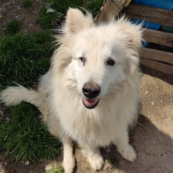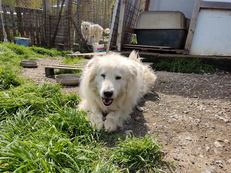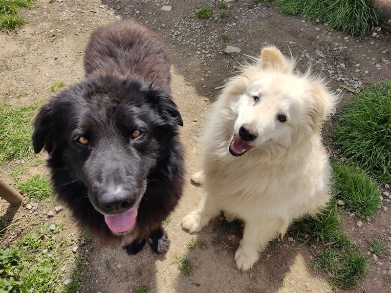 Soja und Rocco sind schon längere Gäste bei Brunella im Refugio. Die Beiden sind ein sehr süßes Paar und Menschen sehr freundlich gegenüber. Streicheleinheiten werden gerne genommen, ebenso wie Leckerchen. Es gibt auch eine kleine romantische Geschichte zu den beiden, die uns Brunella erzählt hat. Soja ist leider unverträglich mit anderen Tieren, daher saß sie alleine in einem Gehege, Rocco war als Streuner vor dem Refugio unterwegs und hat sich durch den Zaun zu Soja durchgebissen. Ihn hat sie von Anfang an akzeptiert. Als Brunella am nächsten Morgen kam und die beiden zusammen in einem Gehege fand, war sie glücklich, dass Soja nicht mehr alleine sitzt. Seitdem teilen sich die Zwei ein Gehege und verstehen sich sehr gut, daher möchten wir sie auch nur gemeinsam vermitteln. Andere Tiere sollten nicht im Haushalt leben. Bei den beiden handelt es sich um Herdenschutzhundmixe, sehr wahrscheinlich ist ein großer Teil Maremmani vorhanden. Sojas rechtes Auge ist scheinbar nicht ganz funktionstüchtig, sie scheint damit aber keine Probleme zu haben.