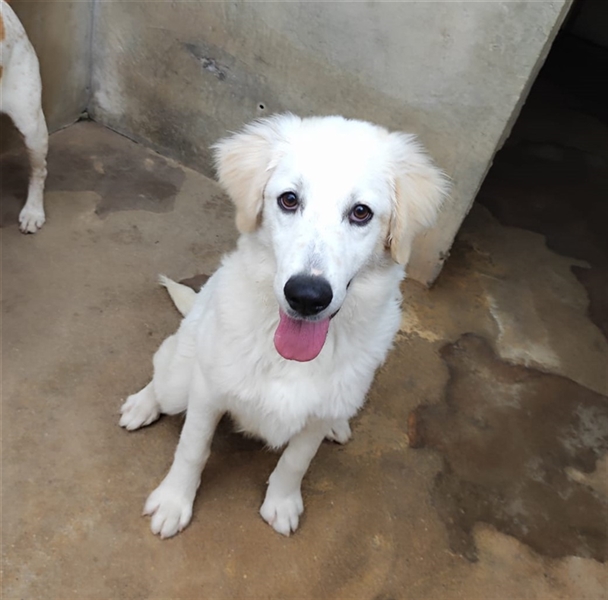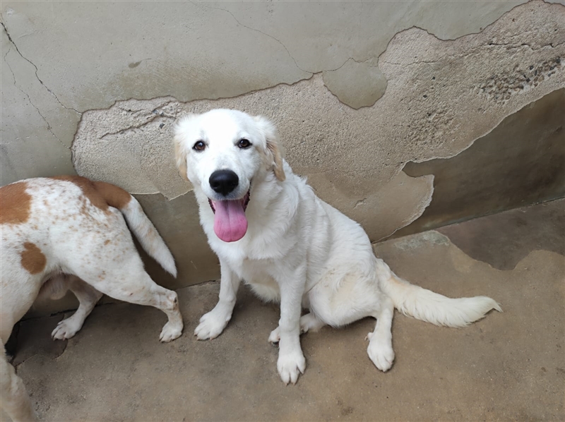 Die vier Schwestern Malaga, Stracciatella, Vagnilia und Gianduia sitzen in einem Tierheim auf Sardinien, zu ihrer Vorgeschichte ist leider nichts bekannt. Sie sind alle sehr offen und freundlich und etwa 5 Monate alt (stand Oktober 2024). Malaga hat momentan etwa 50cm Schulterhöhe und 15kg. Bei den Geschwistern handelt es sich um Maremmanomixe, also Herdenschutzhundmixe.