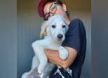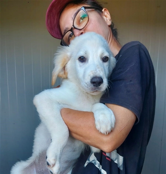 Der Kleine Conte wurde mit seinen beiden Schwestern Cinzia und Carla von Touristen in der Nähe eines Tierheims auf Sardinien gefunden und dort bei unseren italienischen Kollegen abgegeben. Die drei Geschwister sind etwa 3 Monate alt. Conte wiegt momentan etwa 7kg. Bei den Geschwistern handelt es sich um Maremmanomixe, also Herdenschutzhundmixe.