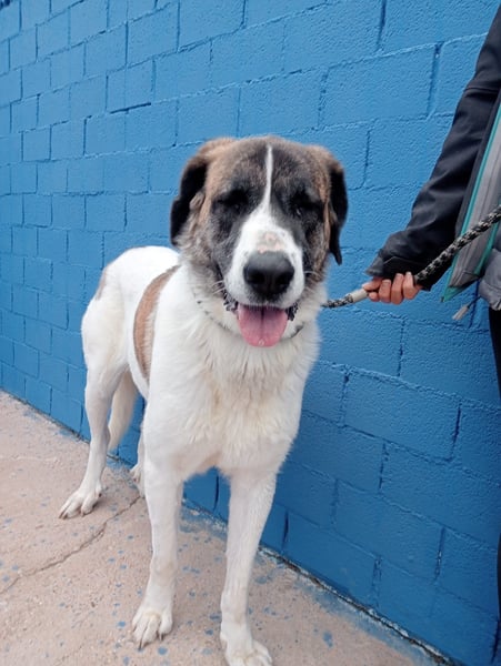 Salsa ist eine dreifarbige Schönheit mit einer eindrucksvollen Erscheinung. Sie ist ca. 74 cm groß und bringt etwa 45 kg auf die Waage – ein typischer Vertreter ihrer Rasse.