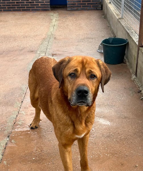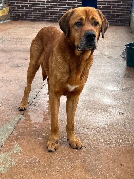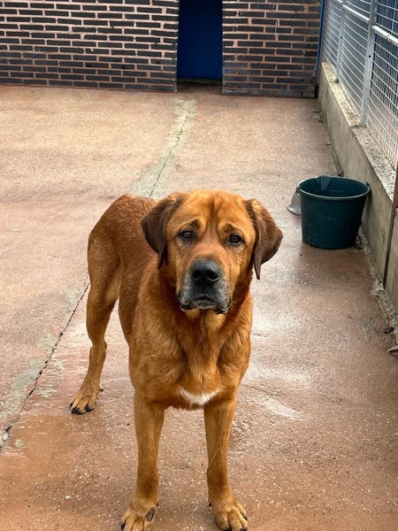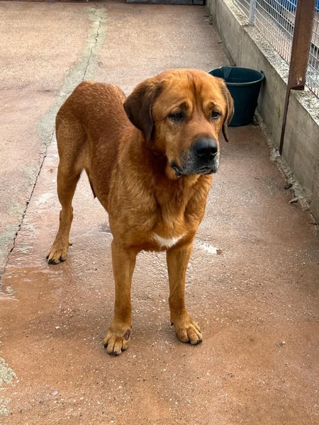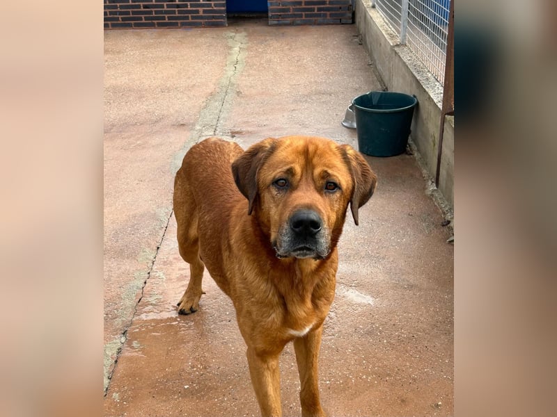 Tommy ist ein beeindruckender, hellbrauner Mastiff-Mischlingsrüde, der allein durch seine Größe und Ausstrahlung sofort ins Auge fällt. Mit seinen ca. 70 cm Schulterhöhe ist er groß, stattlich und dabei einfach wunderschön. Geboren wurde ca. November 2020 – also im besten Alter, um endlich anzukommen und das Leben als Familienhund kennenzulernen.