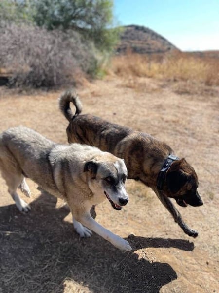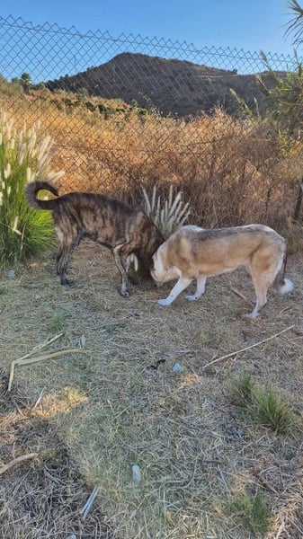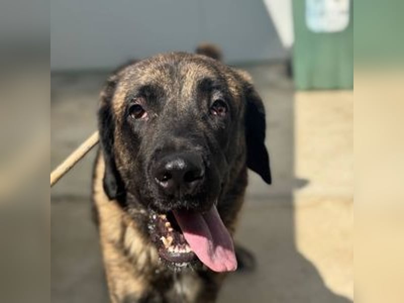 Der große, gestromte Mastín-Mix zeigt sich trotz allem als ruhiger, freundlicher und sozial sehr verträglicher Hund. Im Tierheim lebt er mit zwei älteren Mastín-Hündinnen zusammen und geht bemerkenswert respektvoll mit ihnen um. Auch an der Leine läuft Hermés entspannt und angenehm, gemeinsame Spaziergänge sind ruhig und harmonisch.