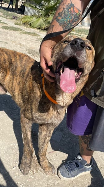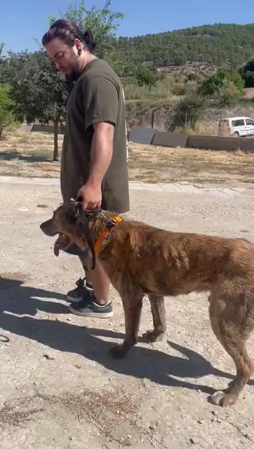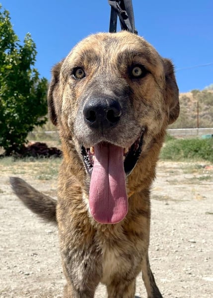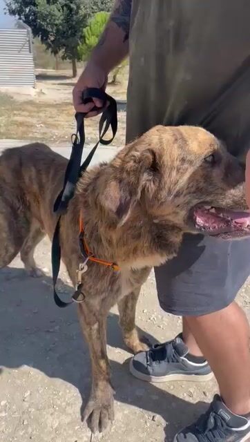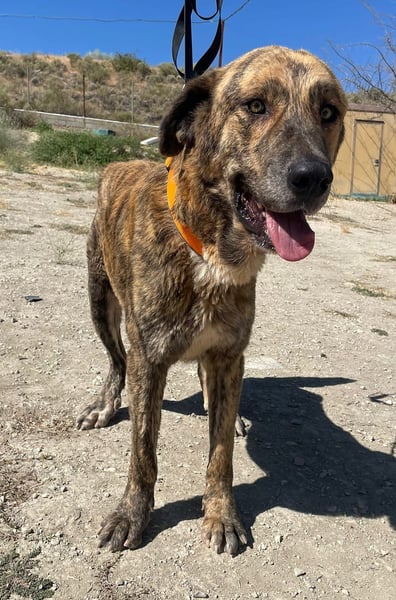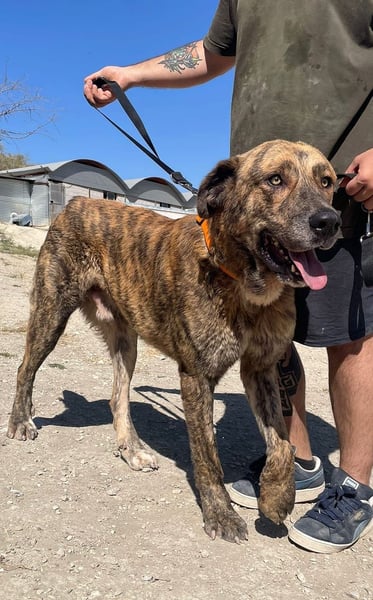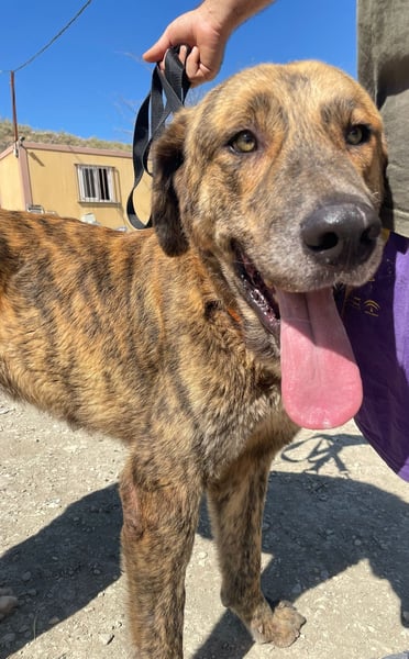 Dino lebte ursprünglich auf einer kleinen Farm in Martos (Spanien), gemeinsam mit seinem geliebten Besitzer. Als sein Mensch starb, wollte niemand die Verantwortung für den großen Rüden übernehmen. Die Farm wurde verkauft, und Dino landete in einem Zwinger – einem trostlosen Ort, an dem er von anderen Hunden schwer verletzt wurde.