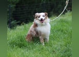 Mini Aussie Deckrüde, 36 cm, red merle, blaue Augen, Toy Australian Shepherd
