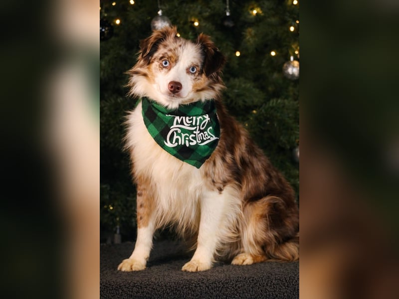 Mini Aussie Deckrüde, 36 cm, red merle, blaue Augen, Toy Australian Shepherd