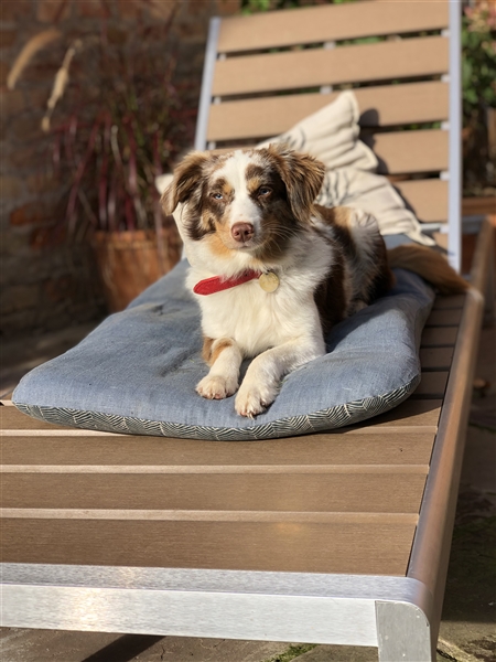 Er ist ein Traum von Hund lieb und sehr sozial, kein Kläffer und auch kein Jagttrieb vorhanden. Er liebt Kinder, Katzen und Wasser.