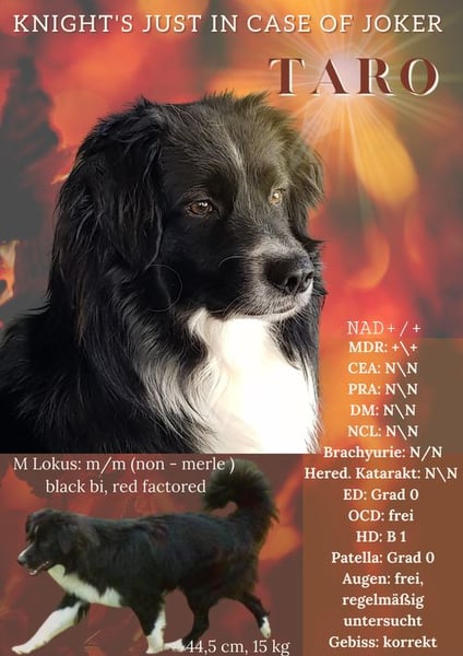 \"Taro\" hat einen superschönen Charakter, der keine Wünsche offen lässt, einige seiner Nachzuchten sind mitlerweile in der Rettungshunde Arbeit, als Schulhund oderTherapiehund im Einsatz, aber auch als Familiehunde glänzen seine Kinder.