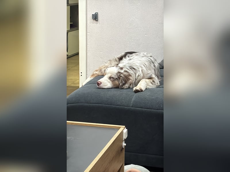 Kleiner Herzensbrecher mit wundervollen blauen Augen im Red Merle Mantel sucht sein Traum Zuhause mit Garten und täglich Unterhaltung. Er ist ein ganz toller aufgeschlossener Rüde der jeden Menschen liebt und mit ihm gerne auch richtig spielen möchte, er ist herzlich und warm in seinem Charakter jedoch wie man wissen sollte Aussie typisch er kann stur sein aber auch sehr sanft, wir haben hier eine so genannte kleine Prinzessin aber er kann auch sehr stur sein man sollte sich schon durchsetzen können! Er ist mit klein Kind aufgewachsen und liebt Kinder abgöttisch gerade wenn sie etwas zu essen in der Hand haben ;)