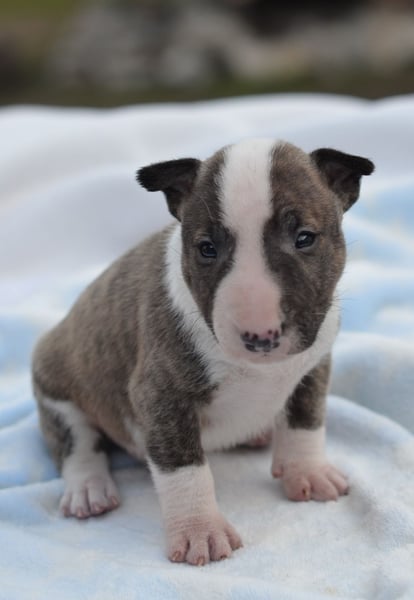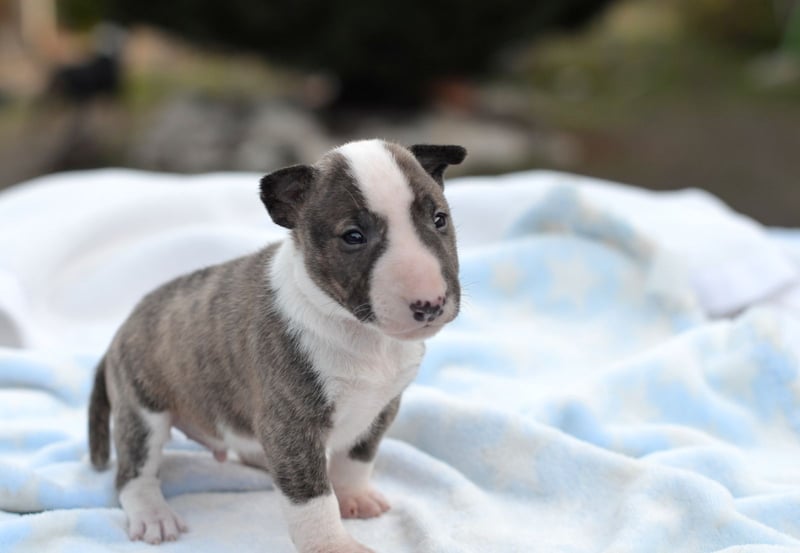 Wir präsentieren Koda, diesen bezaubernden kleinen Mini Bull Terrier Rüden.