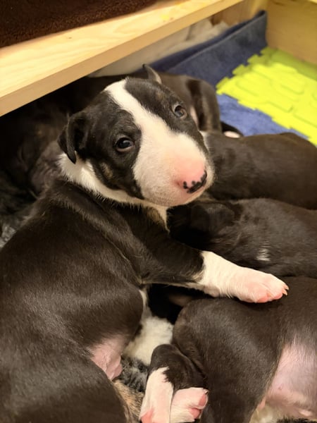 Wir sind eine eingetragene Zucht in einem VDH Verein. Wir wohnen im schönen Unterfranken und züchten Miniatur Bullterrier