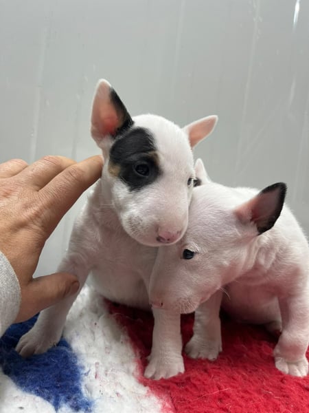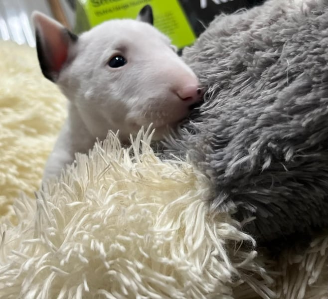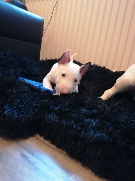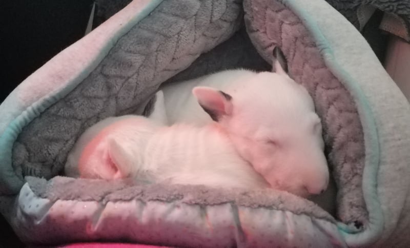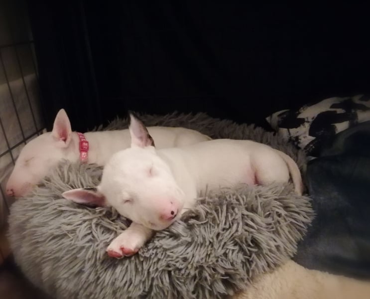 Wir sind eine kleine Familie mit 2 Miniatur Bullterriern( Rüde und Hündin) 1 Norfolk Terrier Rentnerin, 1 Französischen Bulldogge (Hündin) und unserer Toy Pudel Rentnerin aus einem Russischen Shelter. Wir leben in 2 Häusern mitten im Wald, direkt nebeneinander.