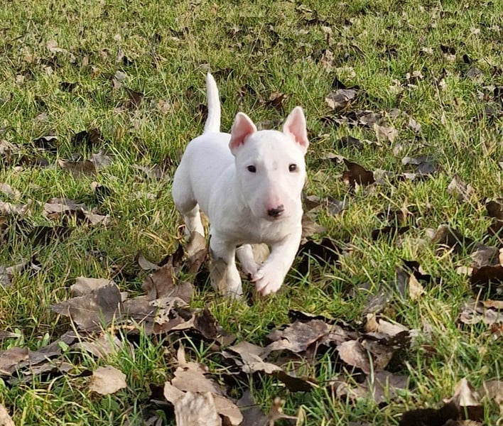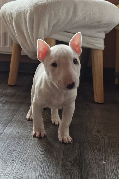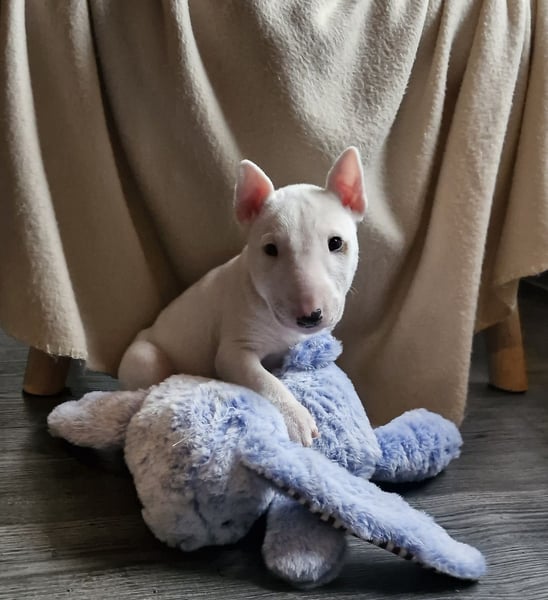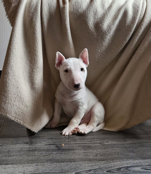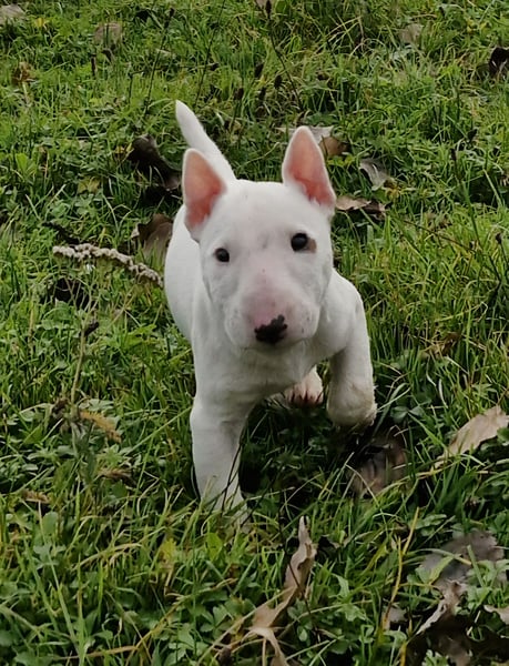 Aus unserem aktuellen Wurf sucht ein kleiner weißer Rüde eine liebevolle Familie.