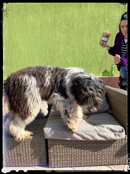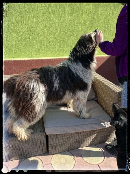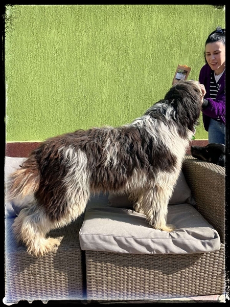 Nini hat Eugen im Februar 24 auf den Straßen Homorods umherirrend aufgelesen. Sie war freundlich und zutraulich und heftete sich sofort an seine Fersen, als ob sie merkte, dass ihr dieser Mensch wohlgesonnen ist. Daher konnte er sich nicht zurück lassen.