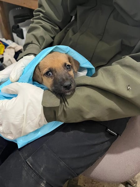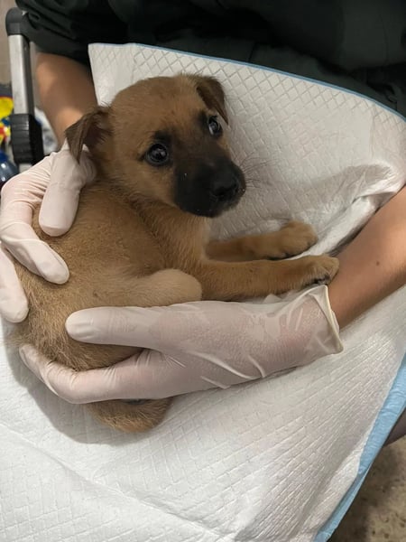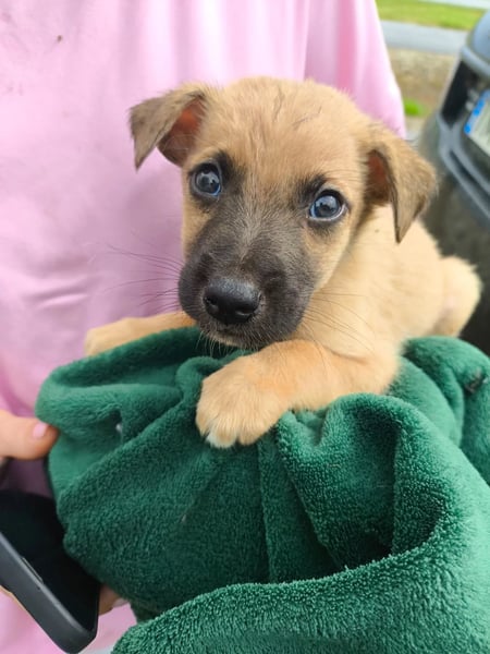 Garry wurde im Juli 2025 ganz allein auf der Straße gefunden. Nun ist der kleine Welpe in Sicherheit im Tierheim Free Amely, darf sich erst einmal erholen und sein Bäuchlein füllen.