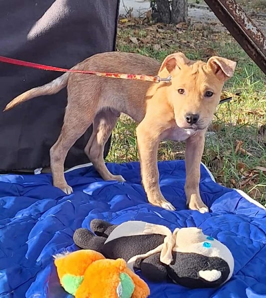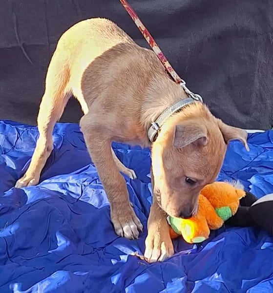 Momoa ist ein junger Rüde und größer als seine Geschwister, Gitta und Robin. Schon jetzt zeigt er, dass in ihm ein mutiger, aufgeweckter kleiner Kerl steckt, der neugierig die Welt erkundet.