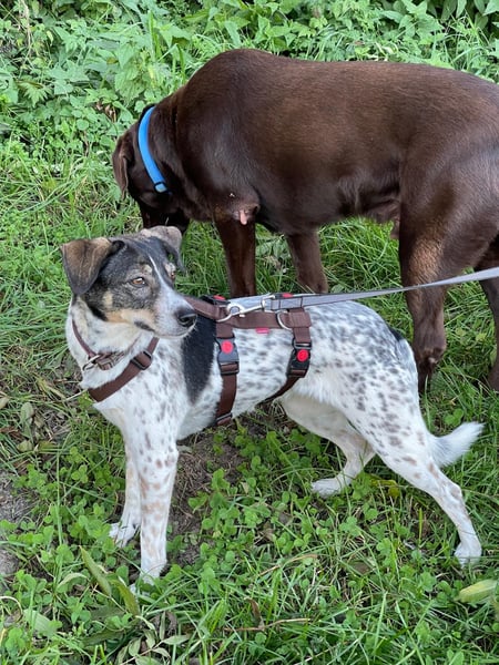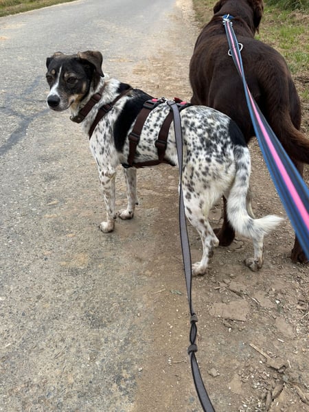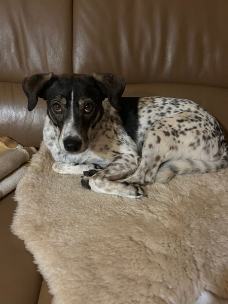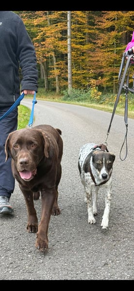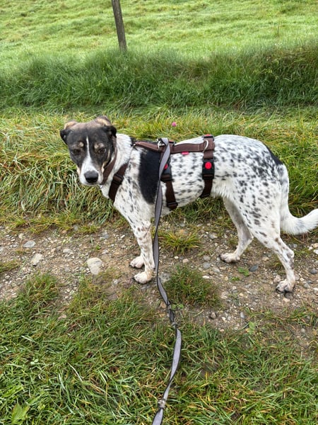 Draußen läuft sie gerne spazieren und geht dabei gut an der Leine. Vorbeifahrende Autos und Traktoren beunruhigen sie immer weniger. Fremden Menschen begegnet sie zunächst zurückhaltend, lässt sich nach kurzer Zeit aber auch von ihnen anfassen. Mit dem Rüden ihrer Pflegestelle versteht sie sich gut – sie verhält sich respektvoll und ruhig im Umgang mit ihm. Männer sind ihr noch etwas unheimlich, doch sie zeigt sich dabei nicht ängstlich, sondern vorsichtig. Auch im Haus meistert sie viele Alltagsgeräusche inzwischen souverän – Staubsauger, Fernseher oder Spülmaschine bringen sie nicht mehr aus der Ruhe.