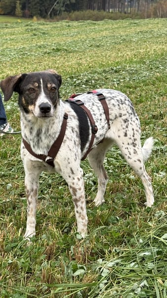 Seit Oktober lebt Tiziana auf einer Pflegestelle in 88410 Bad Wurzach und zeigt dort, welch fröhliche und liebenswerte Hündin in ihr steckt. Anfangs ist sie vorsichtig und beobachtet alles mit etwas Abstand, doch ihre Neugier überwiegt schnell. Zu ihrer Bezugsperson hat sie rasch Vertrauen aufgebaut – sie sucht die Nähe, folgt überall hin und genießt Streicheleinheiten sehr. Tiziana ist aufmerksam, bewegungsfreudig und hat sich erstaunlich schnell an das Leben im Haus gewöhnt. Sie flitzt Treppen rauf und runter, findet selbstständig den Weg vom Garten ins Haus und hört bereits zuverlässig auf ihren Namen.